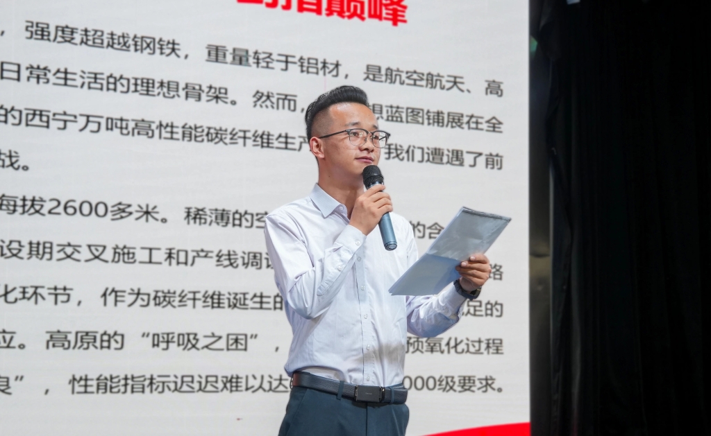 “5年前,我是項目現(xiàn)場的一名女技術(shù)員;今天,我們建成了全球海拔最高的碳纖維生產(chǎn)基地?!笔字v人柴娟的開場白,將聽眾帶回西寧基地建設(shè)現(xiàn)場。她帶領(lǐng)團隊攻克聚合車間建設(shè)難題,實現(xiàn)一次性試車成功,保障了全球最大單體碳纖維基地的穩(wěn)定運行。這位曾被稱為“學(xué)生女工長”的85后,用五年堅守踐行著“材料創(chuàng)造美好世界”的使命。